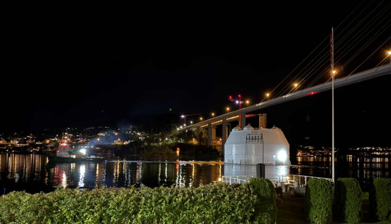 3,5K and 10K are successfully launched and are heading to Eydehavn. The globes were moved with hydraulic transport systems to the dock where Uglen, and iconic 800-tonne capacity crane, was ready to lift the globes into the sea. The globes…